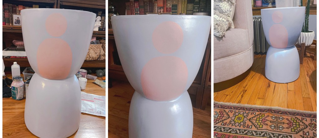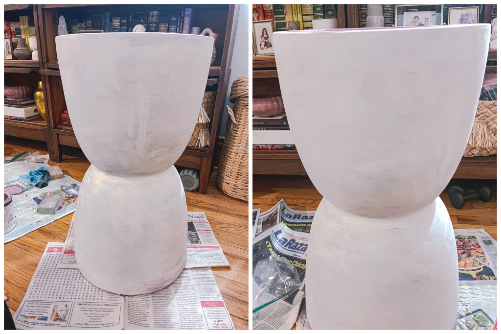 Once you are happy with your spackling application, paint the entire planter. I find that two coats is always best, but it depends on the type of paint you use. I painted the inside of the top as well because it was easy to see inside of it since it is so large, but this isn’t a necessity.