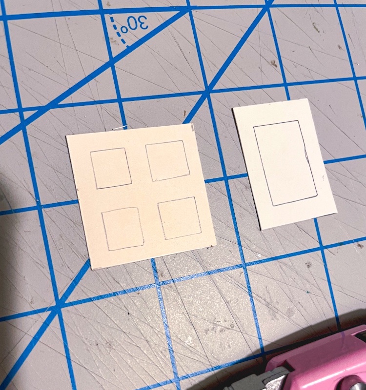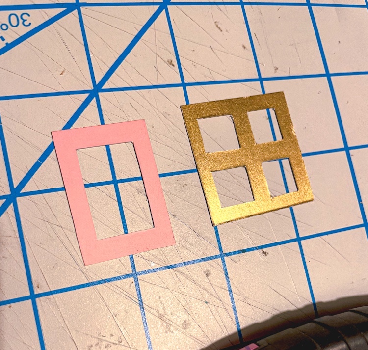 Use a pencil and ruler to cut out shapes to frame windows and doorways on your house out of paper. Then use the ruler and pencil to draw out the inner cut outs. When cutting use the ruler as a guide and go slowly – you don’t have to press down super hard with the knife, instead go over each line gently a few times to make the cut.